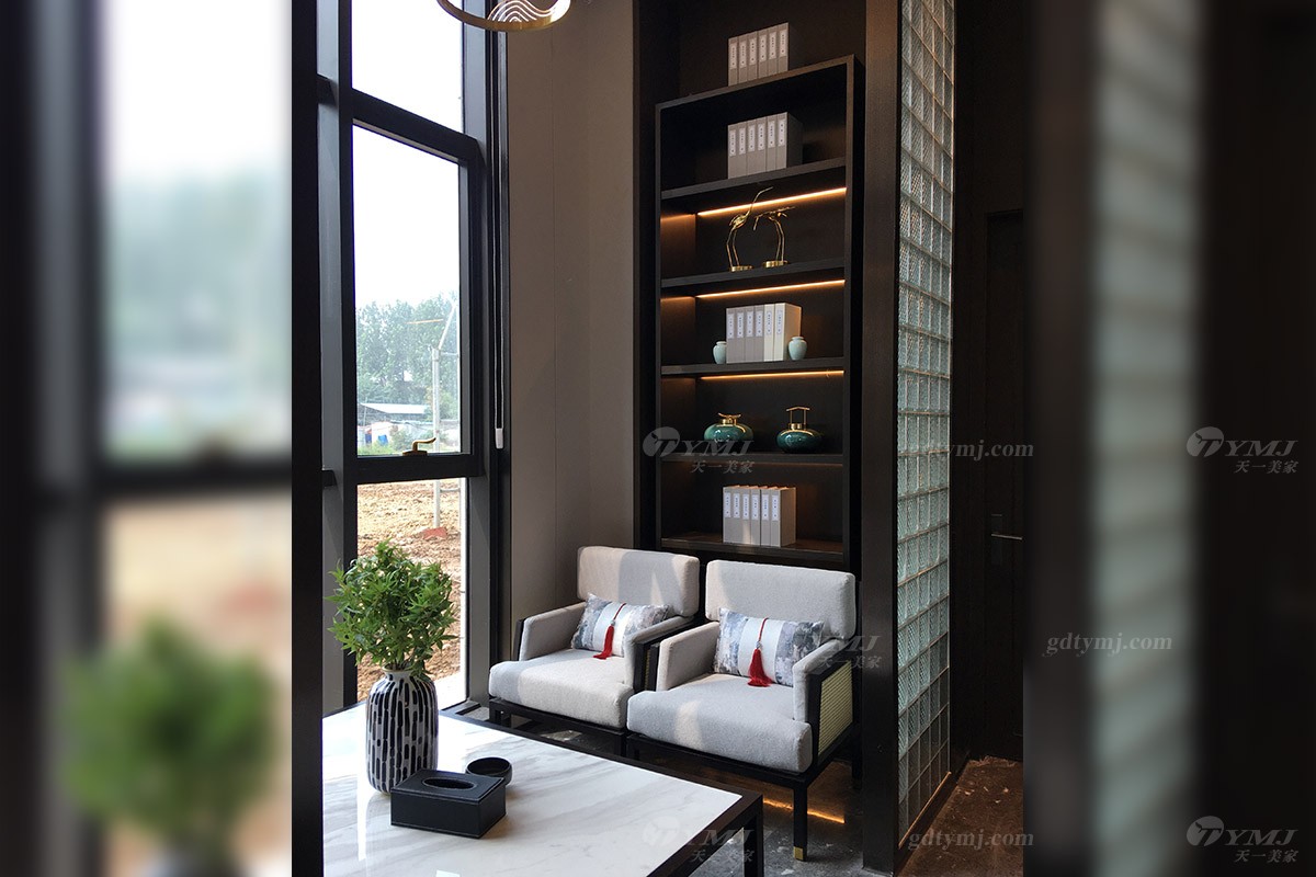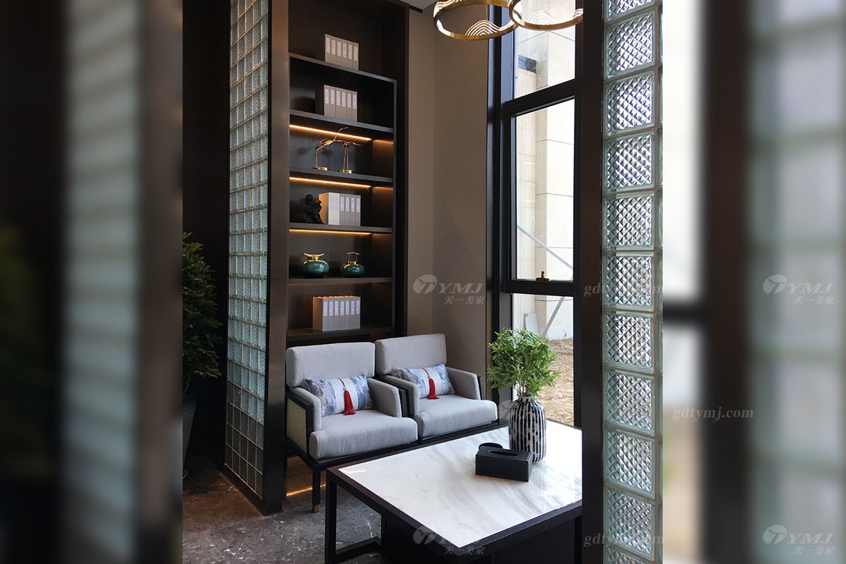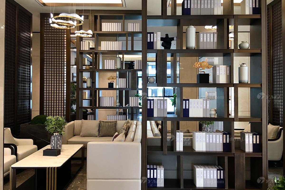 一樓售樓處,風格為新中式風格。巧妙的把中國的經典元素與新時代簡約原理融合,既不失去中式的味道,也體現新時代的簡潔與時尚。這就是新中式的獨有的性質與特征。