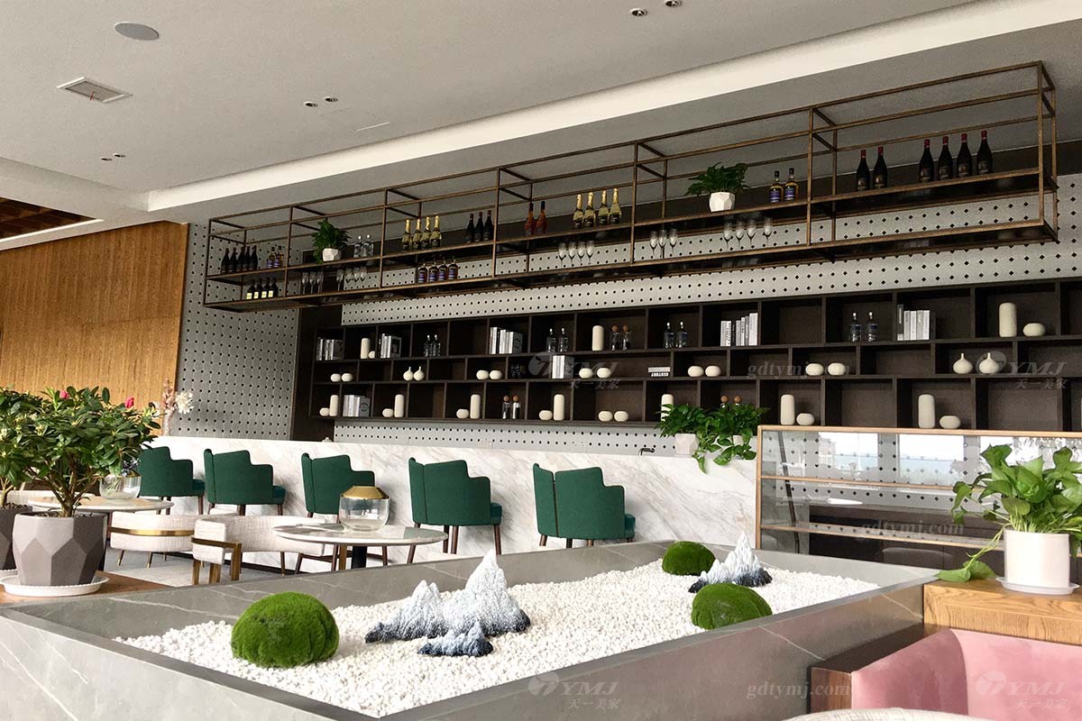 四層咖啡書吧還是運用了現代輕奢風格,吧臺面用的是大理石,一來凸顯高貴。二來營造寧靜的感覺,周邊也增加了不少綠植,不僅可以美化環境,還可以放松客戶的心情。可以在這個寧靜的咖啡書吧里,靜靜的品嘗咖啡的同時,盡情的閱讀書本。