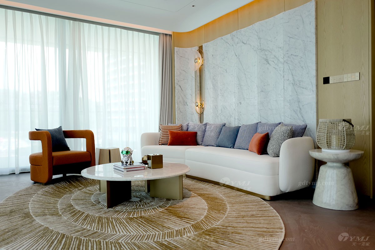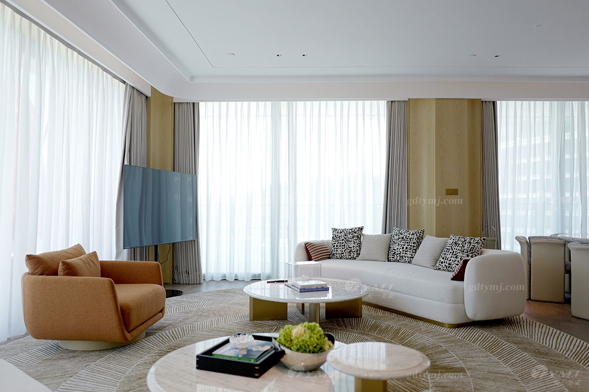 本案為現(xiàn)代極簡(jiǎn)奢華設(shè)計(jì)風(fēng)格,以白色,原木色為主基調(diào),以灰、藍(lán)、紅、咖啡棕等色調(diào)為輔,作為點(diǎn)綴裝飾,以增加空間的層次感和活力,并融入了深圳特有的海洋文化元素;墻面裝飾大量運(yùn)用原木色波浪木紋、弧形轉(zhuǎn)角造型;獨(dú)特的懸浮式吊頂及采用無主燈設(shè)計(jì),簡(jiǎn)約又時(shí)尚;簡(jiǎn)潔流暢的線條設(shè)計(jì),純粹的色彩搭配,大理石、金屬等材質(zhì)的運(yùn)用以及細(xì)節(jié)的工藝處理,無不彰顯極簡(jiǎn)風(fēng)格的精髓,注重功能實(shí)用性的同時(shí),追求形態(tài)與功能的完美結(jié)合,整體在視覺感受上體現(xiàn)了一種清新自然,舒適雅奢的氛圍,與酒店的整體設(shè)計(jì)完美融合。