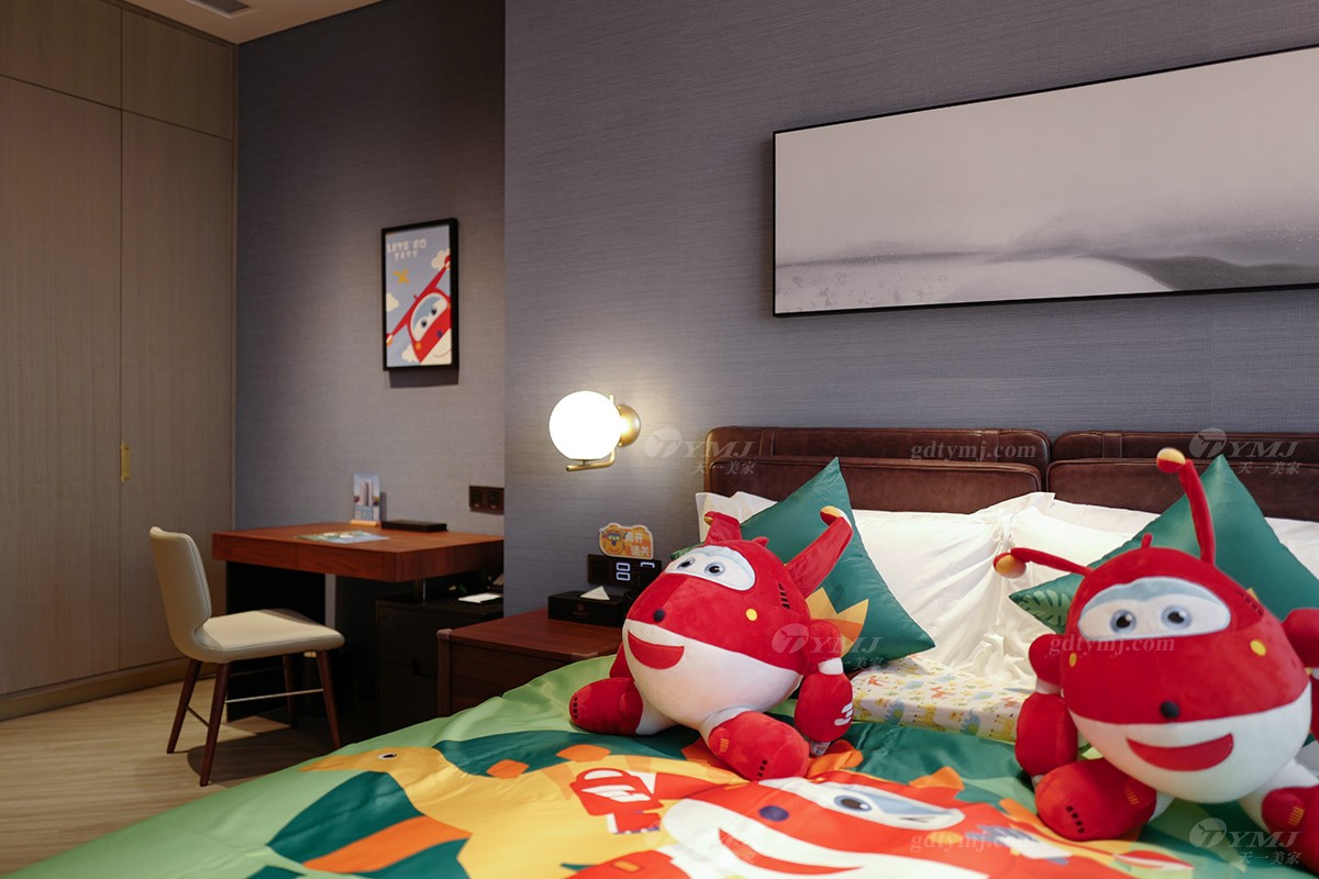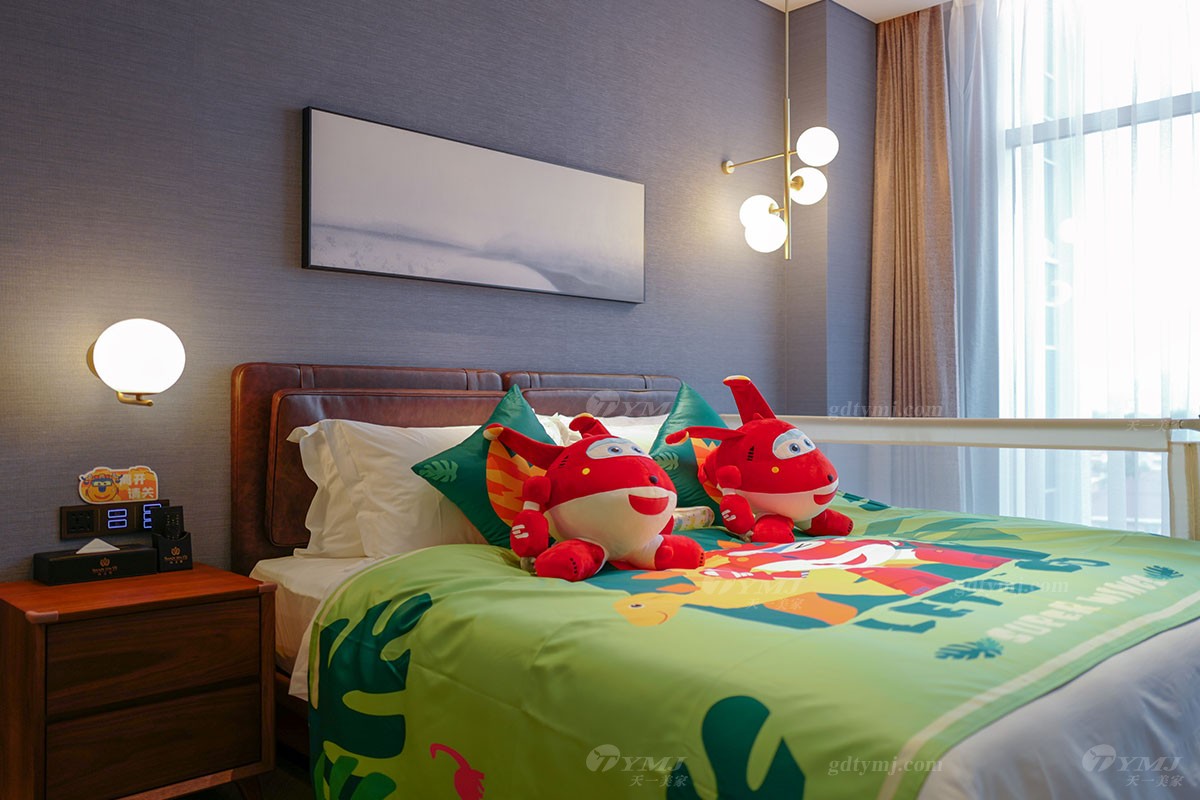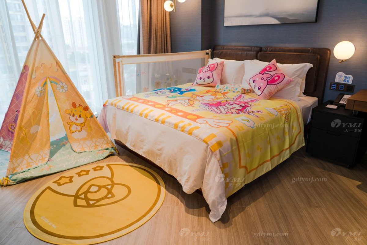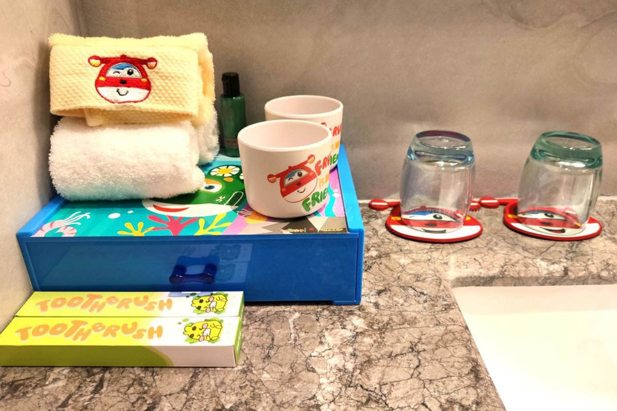 溫馨有趣的主題親子房分別以小朋友非常喜愛的兒童動畫片《超級飛俠》、《豬豬俠》、《巴啦啦小魔仙》等系列為主題而進行精心設計打造,無論是客廳、臥室,還是洗手間的布置裝飾,隨處都可見到主題動畫里活潑有趣勇敢的主角們的元素,主題親子房還配備了相關的兒童帳篷、玩偶、小滑梯,小動物坐凳等等,通過這些透露著愛與細致、并融入了主題元素的活動家具軟裝的點綴裝飾,讓房間內瞬間充滿活力與趣味性,營造出一個既溫馨自然又充滿趣味與想象力、大人和小孩都能樂享其中的美好空間。