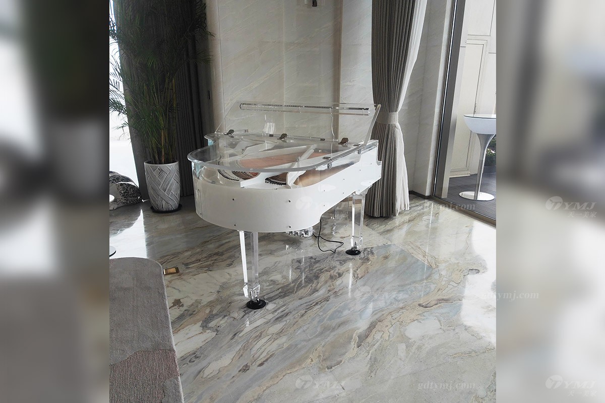 超大的客廳居住空間,達7.2米的超高層高,絕對的寬敞明亮,采光充足,U型皮布藝結合沙發組合,簡約大氣、舒適自然,穿過鋼化玻璃門直通超大陽臺,陽臺上種滿了花草,枝繁葉茂,花團錦簇,香味怡人;客廳一角矗立著一架純白色水晶三角鋼琴,猶如一件優雅的藝術珍品,閑暇時,彈上一曲,美妙的音符仿佛也在訴說著喜悅,客廳旁邊即是由白色大理石打造的大吧臺,吧臺兩端凸出的半球造型,顯得分外雅致有趣,整個偌大的空間,不論是會客還是家庭聚會,都可滿足你所有的想象。
