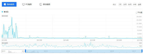 “奢侈品”關鍵詞在2012年~2017年百度指數上的整體趨勢