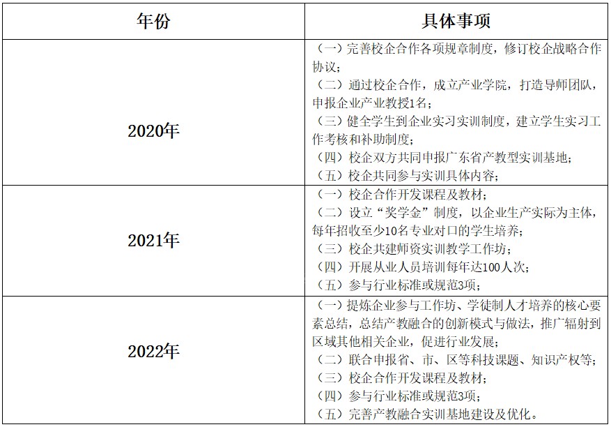 探索校企合作創(chuàng)新體制機(jī)制,創(chuàng)新“共育、”人才培養(yǎng)模式、產(chǎn)教一體教學(xué)管理模式、“工作坊”教學(xué)模式,優(yōu)化“技能+質(zhì)量”模塊化專業(yè)群課程體系,制定專業(yè)教學(xué)標(biāo)準(zhǔn),建成集實(shí)踐教學(xué)、社會(huì)實(shí)踐和技術(shù)服務(wù)為一體、賽教融合、國(guó)家級(jí)高水平專業(yè)化產(chǎn)教融合實(shí)訓(xùn)基地。廣東天一美家家居集團(tuán)有限公司將繼續(xù)深化共育、融及合作辦學(xué),探索校企共建“產(chǎn)業(yè)學(xué)院”,將公司未來(lái)人才梯隊(duì)建設(shè)提升到一個(gè)高度,更好的體現(xiàn)高水平專業(yè)工程服務(wù)商務(wù)實(shí)型人才培育平臺(tái)。