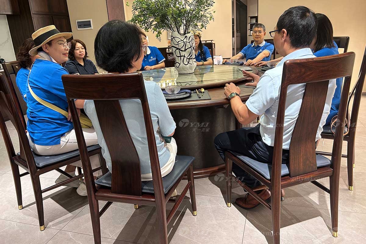 本次活動(dòng),由天一美家渠道部總經(jīng)理趙圍觀先生全程陪同參觀和接待,嘉賓們分別參觀了天一美家總部展廳、中式會(huì)所,現(xiàn)代極簡(jiǎn)風(fēng)格旗艦展廳以及新中式家居風(fēng)格生活館等部分展廳,在天一美家的展示廳內(nèi),嘉賓們被眼前的家具產(chǎn)品深深吸引。這些家具不僅精雕細(xì)琢、匠心獨(dú)具,更是手工藝術(shù)與現(xiàn)代制造的完美結(jié)合。