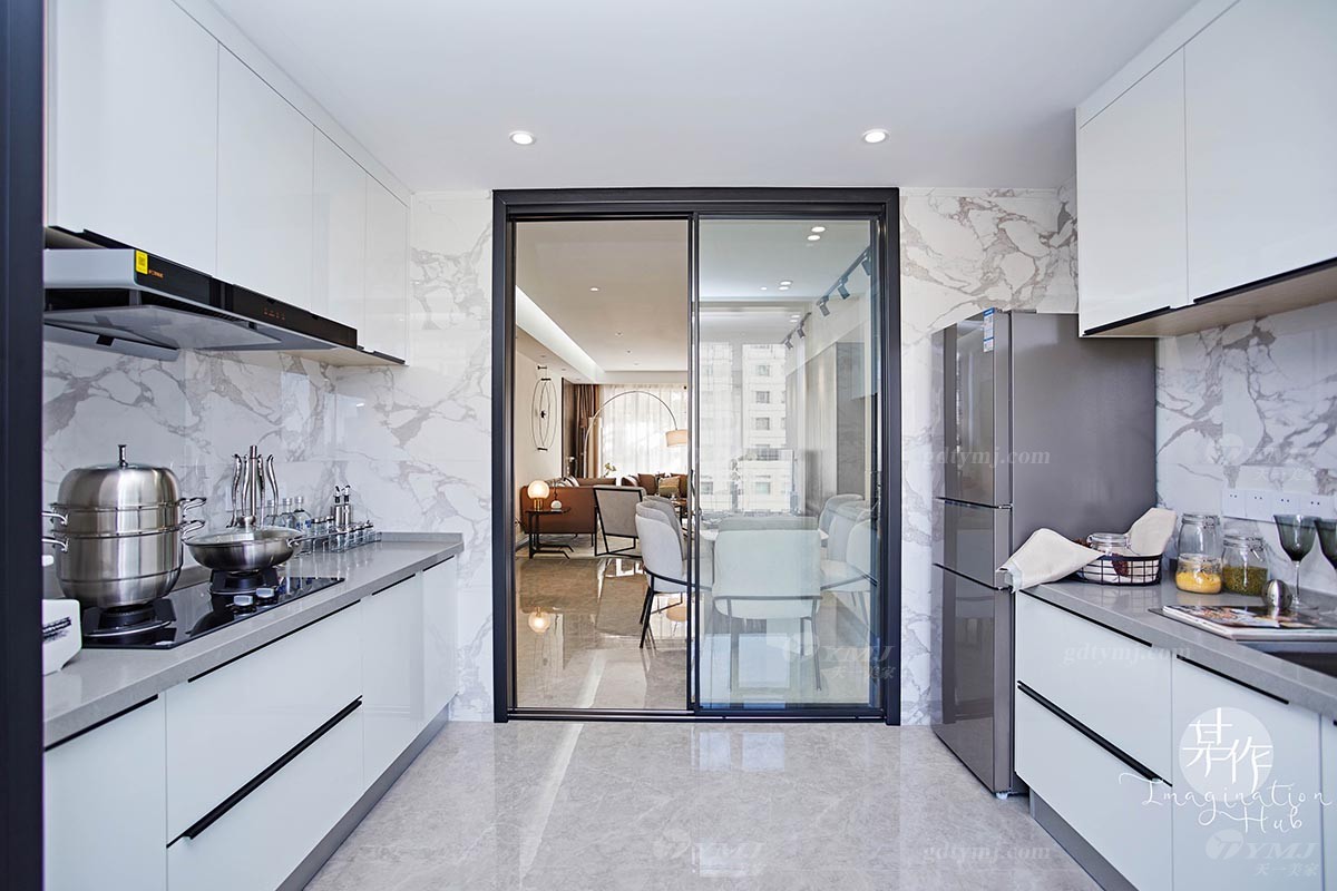 二、現代輕奢:從整體布局到每個細節,以簡潔的方式將不銹鋼金屬、大理石及整體軟裝飾品等不同的藝術形式組合、搭配,創造了一個溫馨、舒適的空間,簡約而不失格調,這體現了設計師對風格的深刻理解,所謂恰到好處的精致;