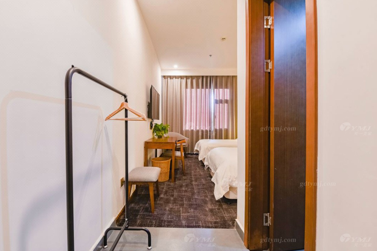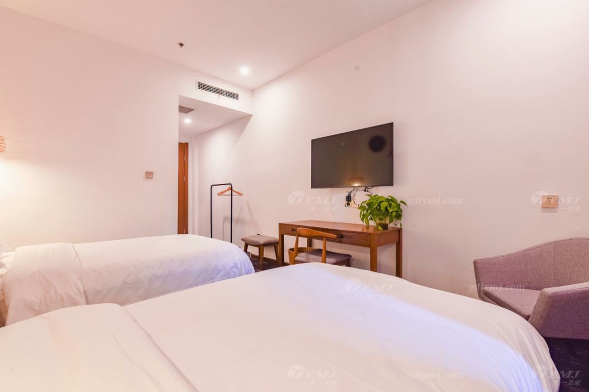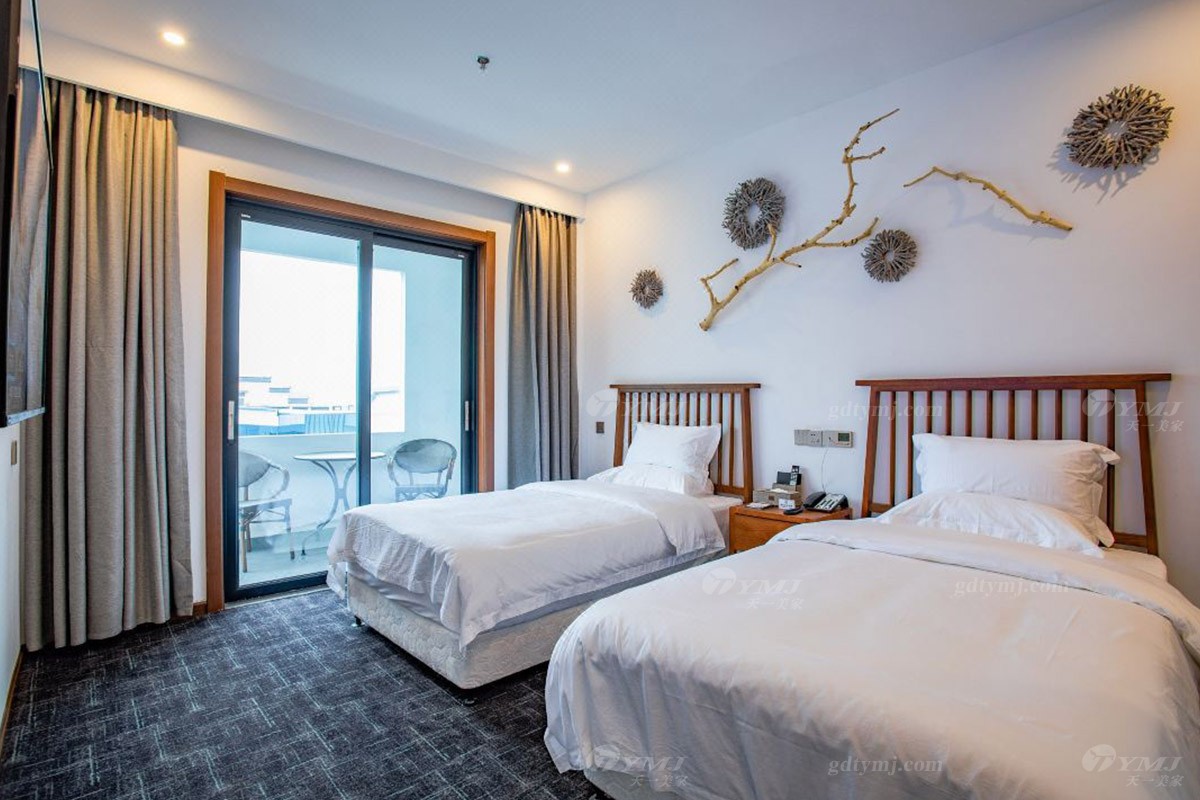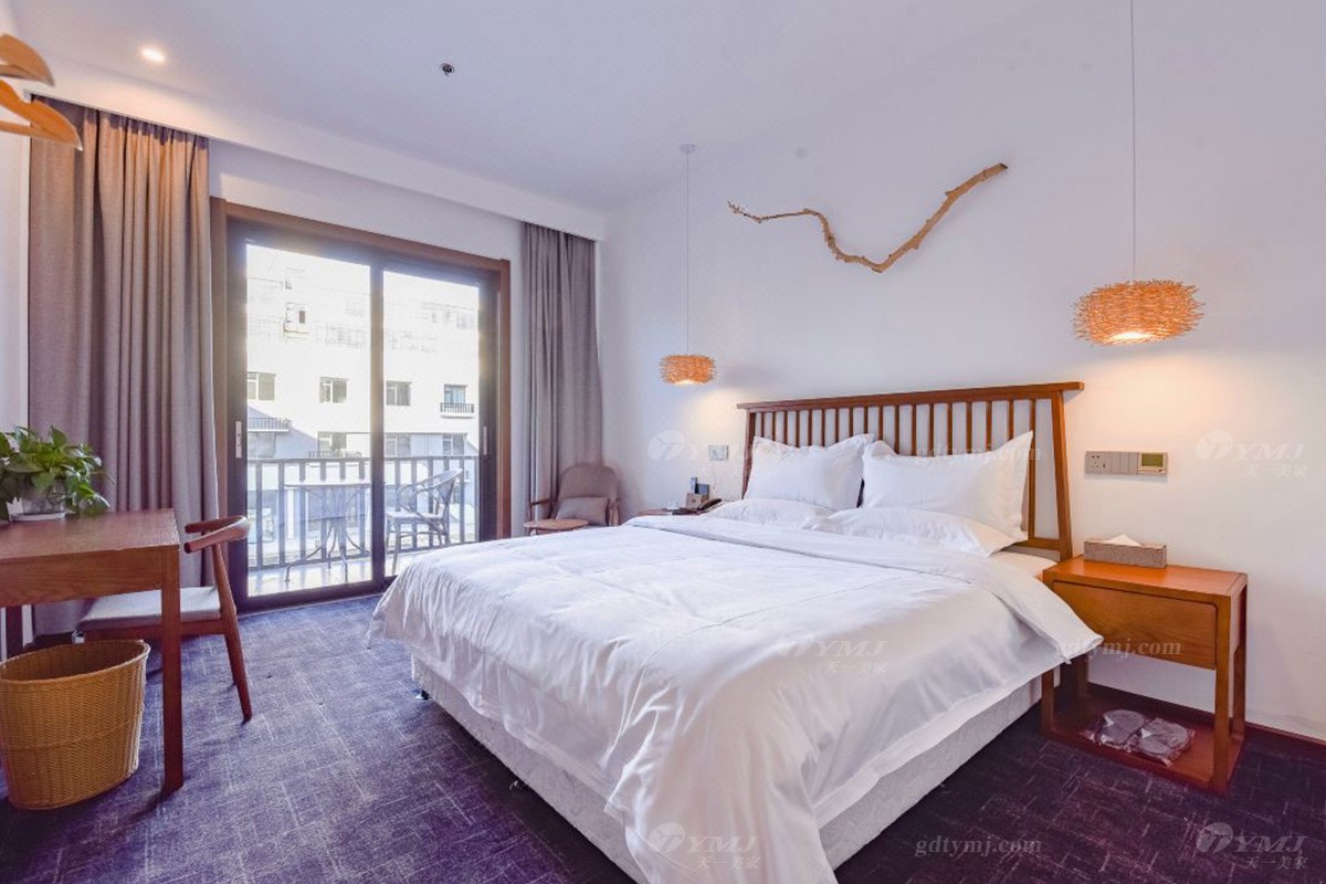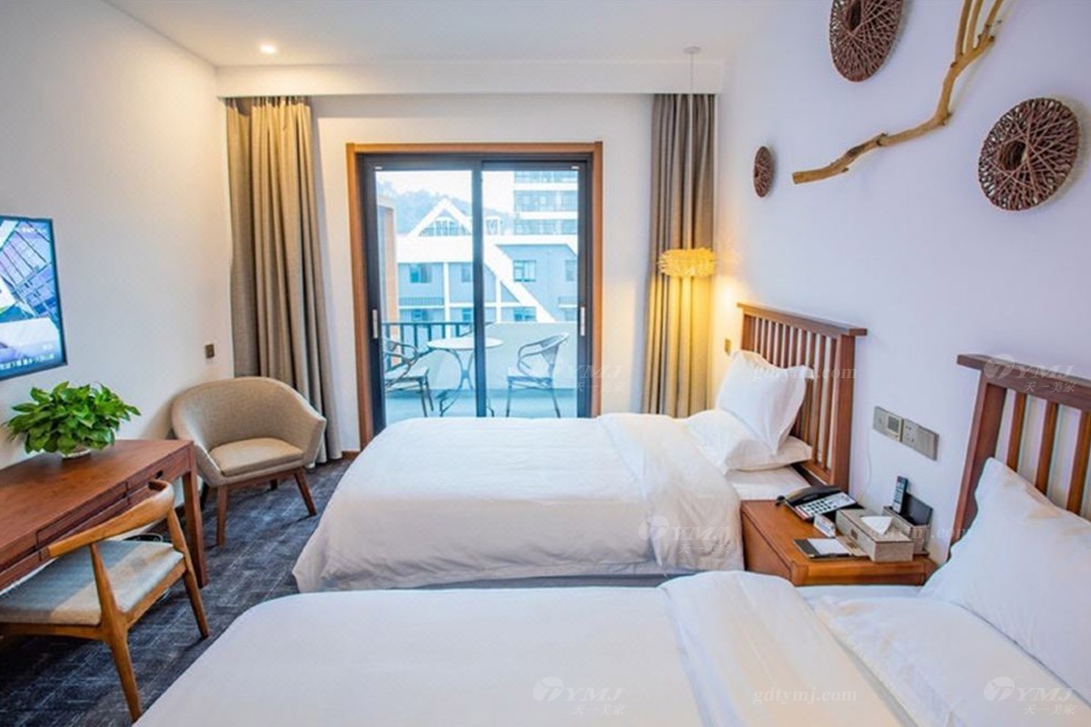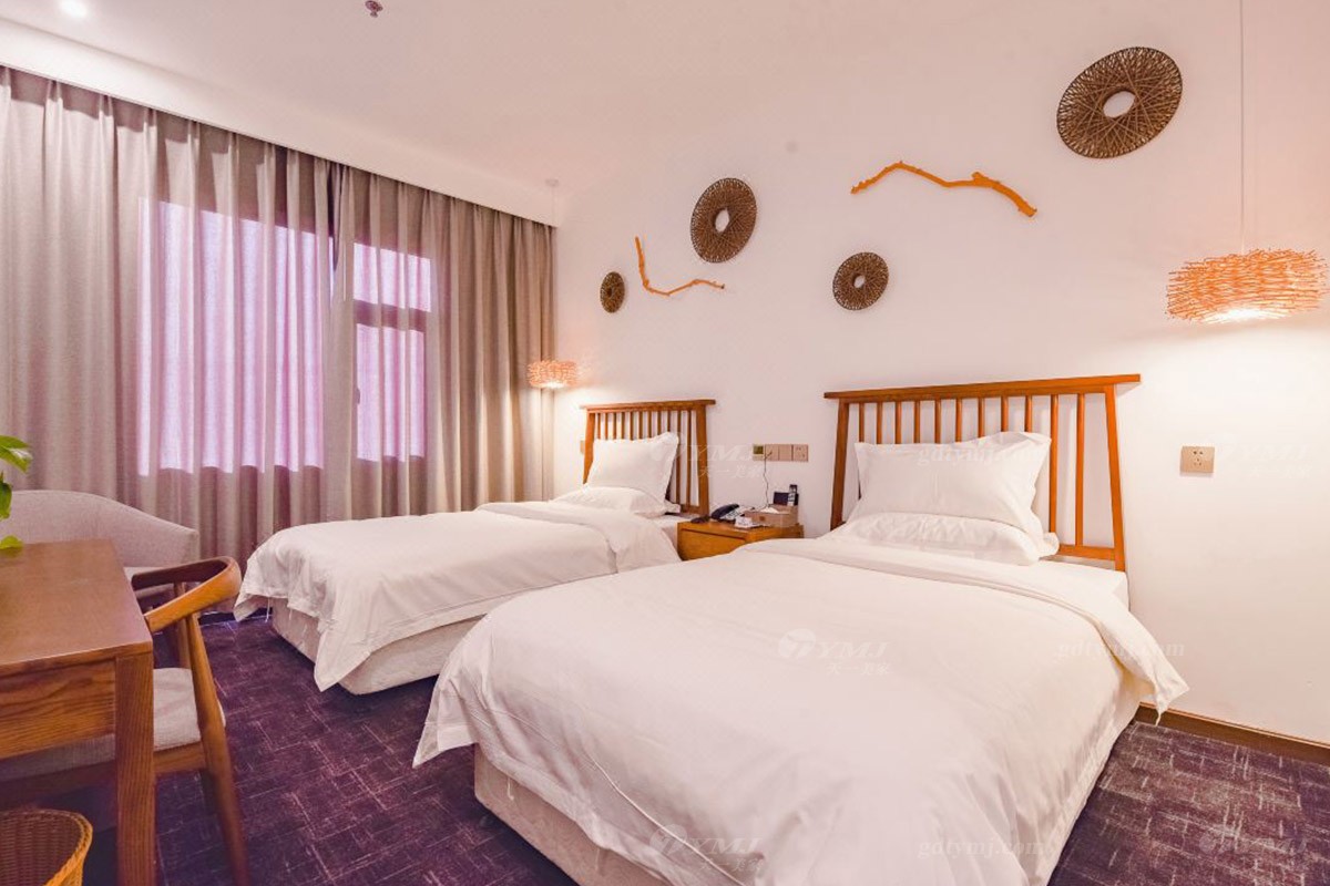 項目介紹:本項目為新縣蔓鄉·大別山居名宿酒店位于河南新縣金蘭大道民宿學院、許世友將軍墓等旅游景點,周邊環境秀美,結合了民宿和商務酒店的整體設計風格,鑒于此,家具產品的設計自然是以目前更貼近民宿意境的現代新中式風格為設計理念,整體線條簡約流暢,材料以原木實木為主,原木色的色調搭配灰色、白色、黑色元素,加上民宿風的燈飾、掛件、綠植等軟裝飾品的點綴,給人一種別具一格、清新雅致的意境,既特顯檔次,又簡約大方。柔和的燈光,軟硬適中的床墊,干凈簡潔的室內空間,溫暖而舒適。