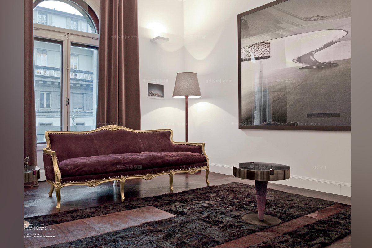 Longhi現(xiàn)代酒紅色布藝三人位沙發(fā)