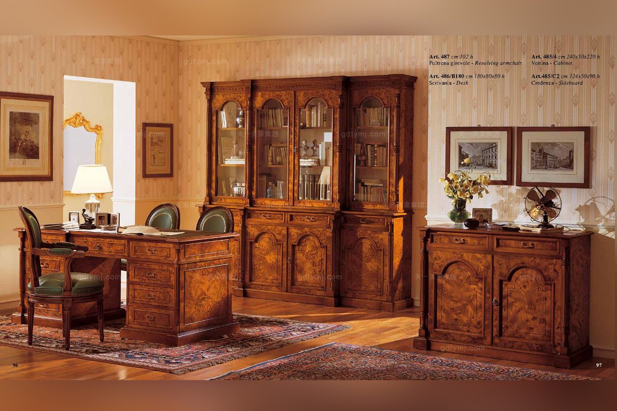 Minotti Luigi&Benigno歐式實(shí)木雕花櫻桃色木皮拼花書(shū)房系列