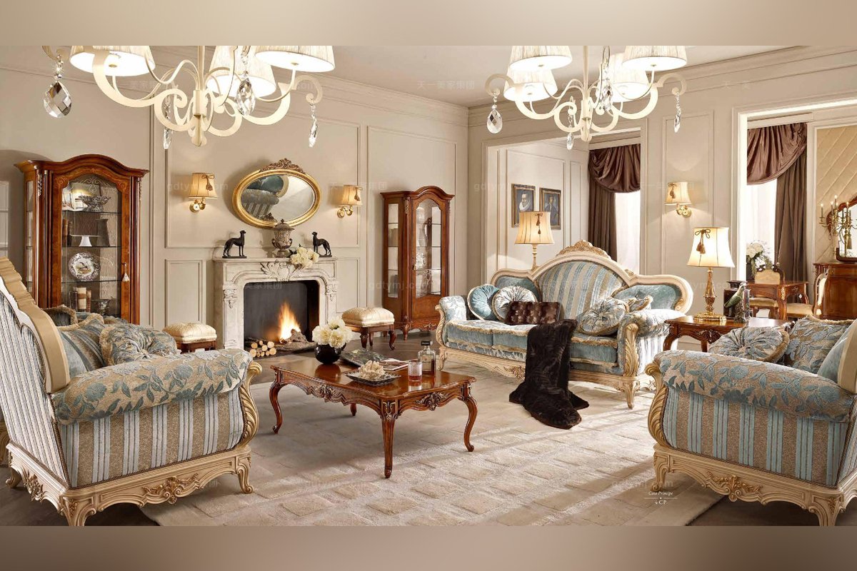 Valderamobili意大利進口法式高端品牌雕刻藍色沙發