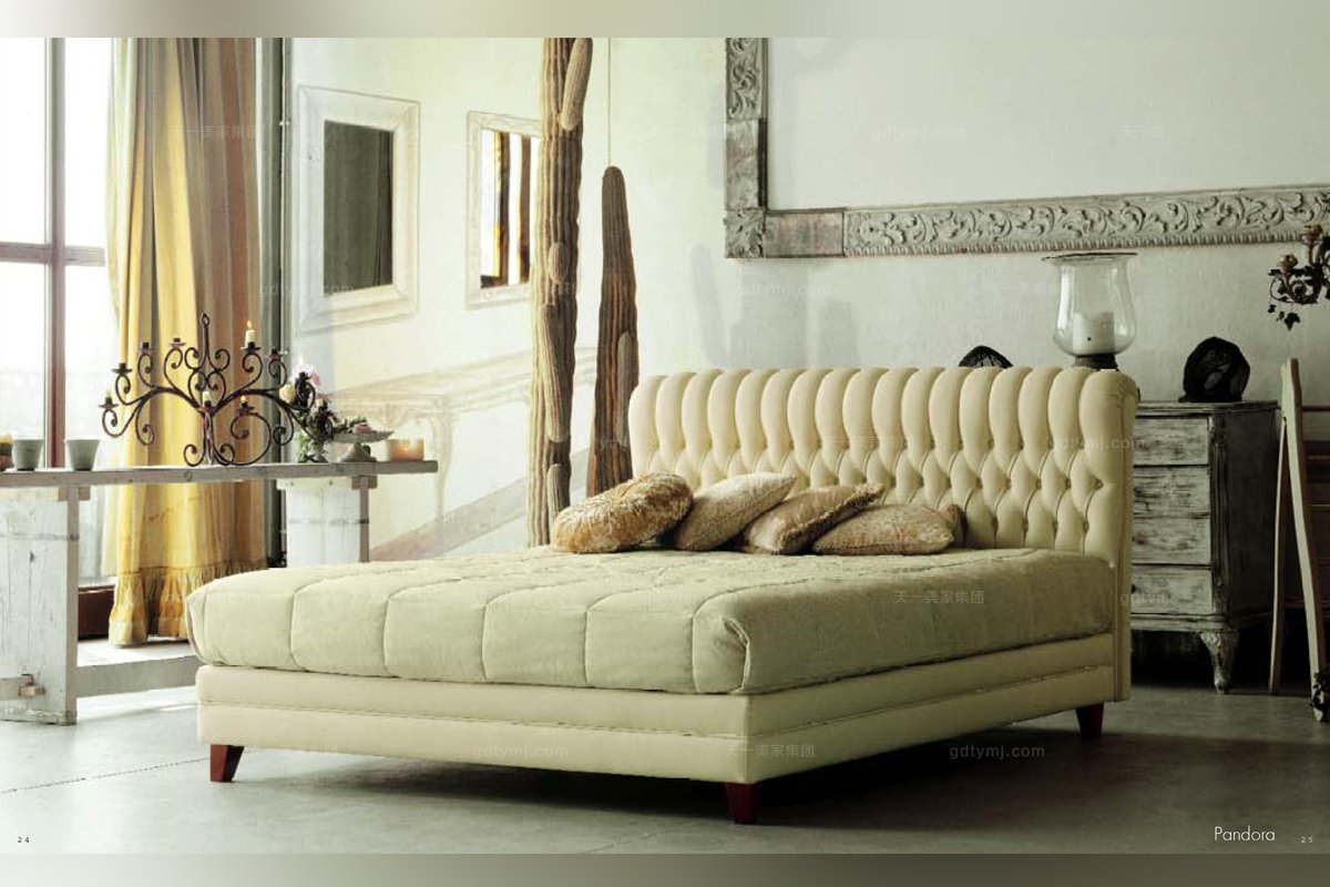 Pigoli 皮溝里米黃色布藝拉扣臥室軟床系列