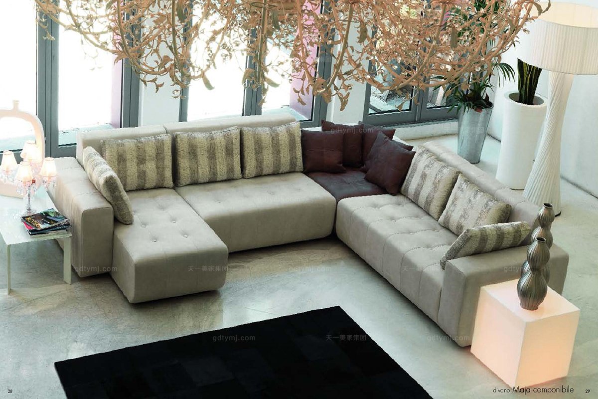 Pigoli 皮溝里灰色皮革轉角沙發客廳系列