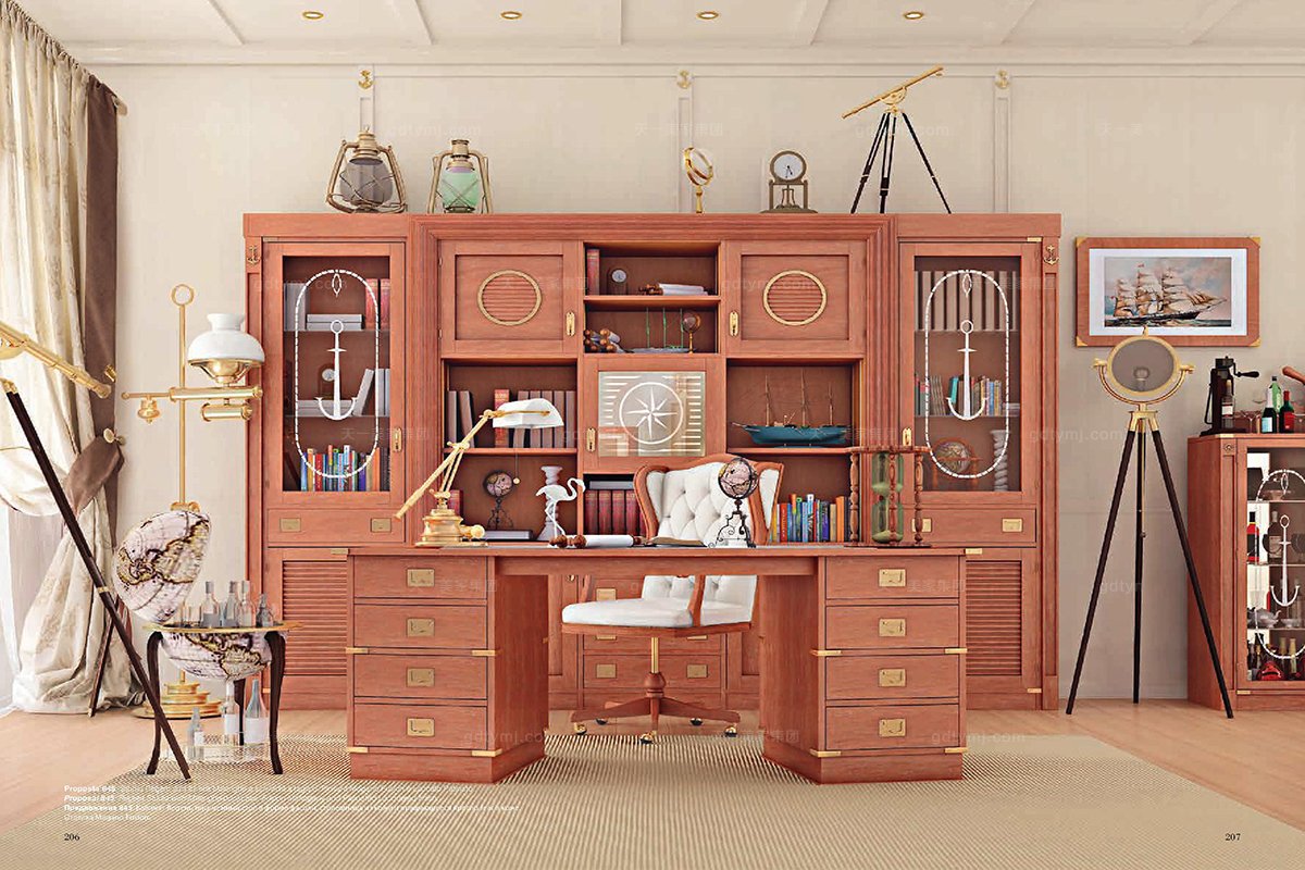 Caroti 卡若緹實木框架白色皮質書椅+原木色書房系列