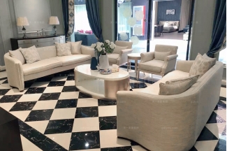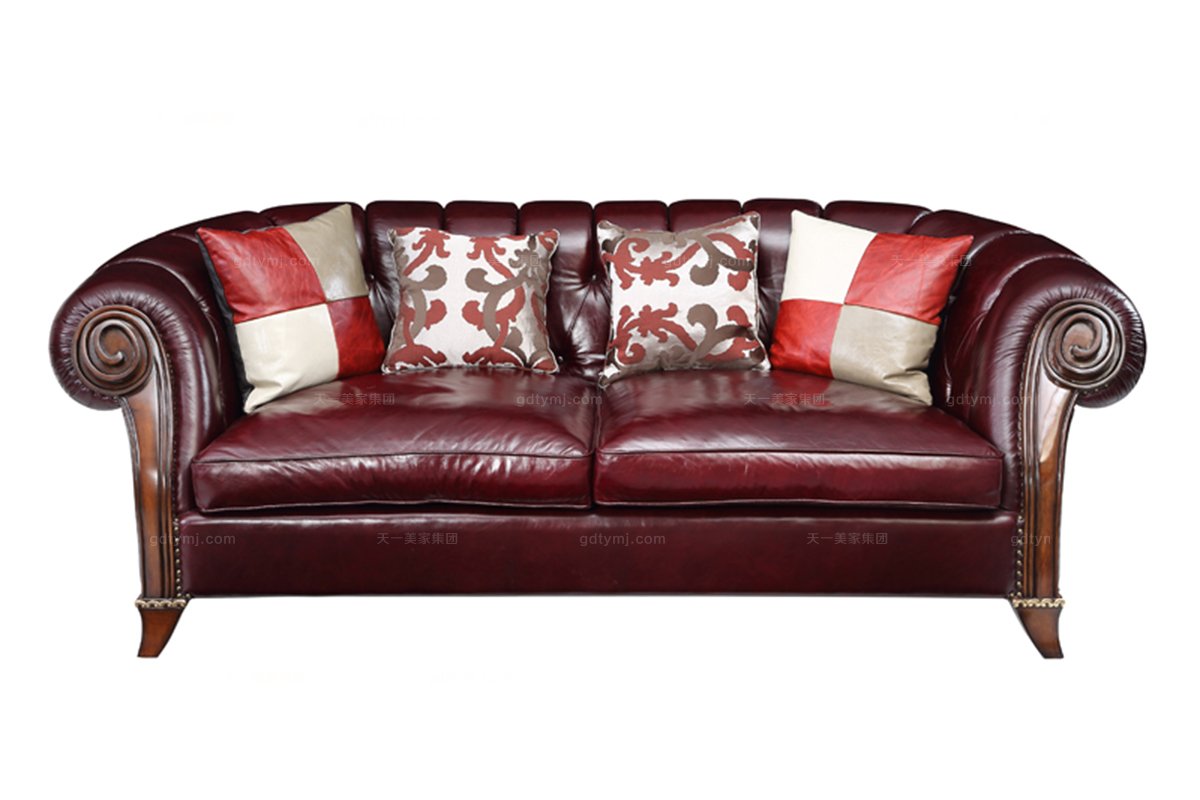 高端別墅家具品牌櫻桃色三人沙發(fā)