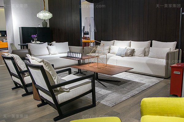 意大利極簡(jiǎn)奢高端真皮+布藝客廳家具組合