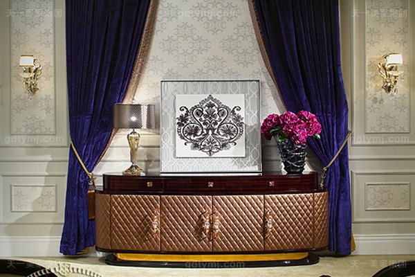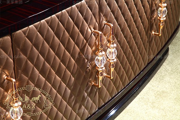 名貴后現代輕奢家具餐廳家具玫瑰金高黑亮黑檀木皮飾面備餐柜裝飾柜