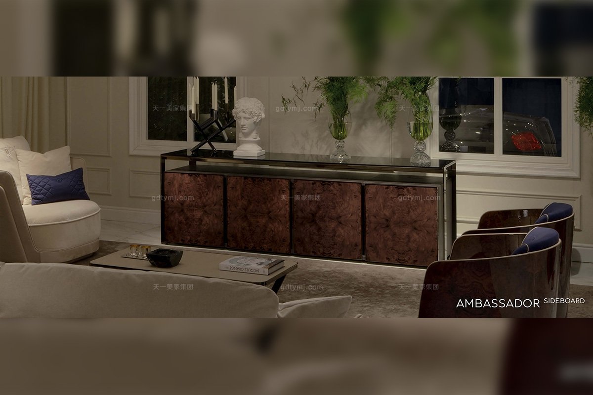 名貴別墅會(huì)所品牌家具客廳后現(xiàn)代奢實(shí)木電視柜