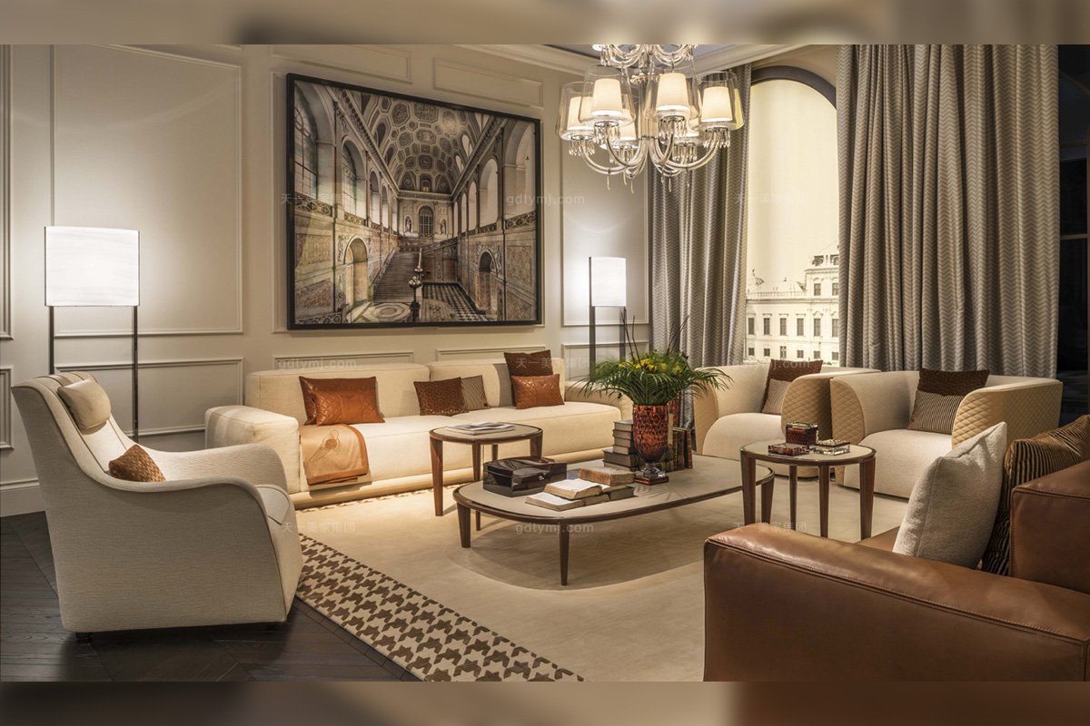 名貴奢華五星級酒店家具品牌后現代客廳米色布藝沙發組合