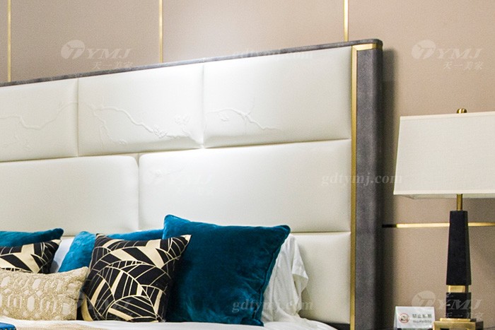 奢華別墅會(huì)所家具品牌輕奢現(xiàn)代臥室家具真皮雕花大床組合