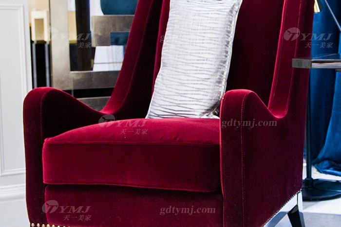 輕奢現(xiàn)代家具別墅豪華家具品牌時(shí)尚酒紅色優(yōu)質(zhì)絨布藝休閑沙發(fā)