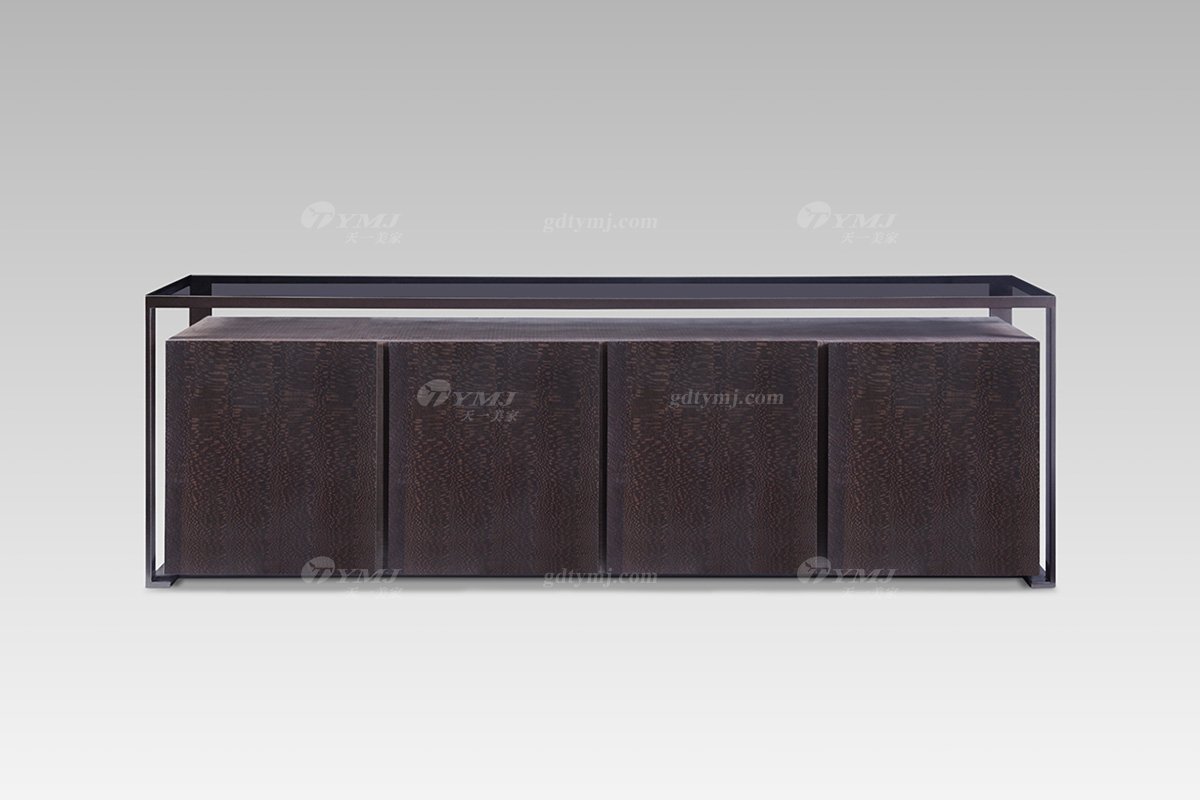 現代輕奢別墅會所家具品牌灰橡色+黑珍珠電視柜
