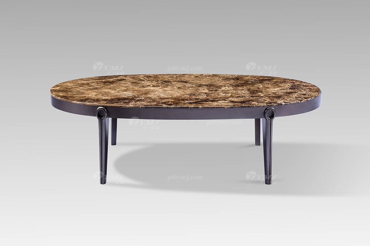 現代輕奢高端會所家具實木灰橡+網咖色大理石橢圓幾