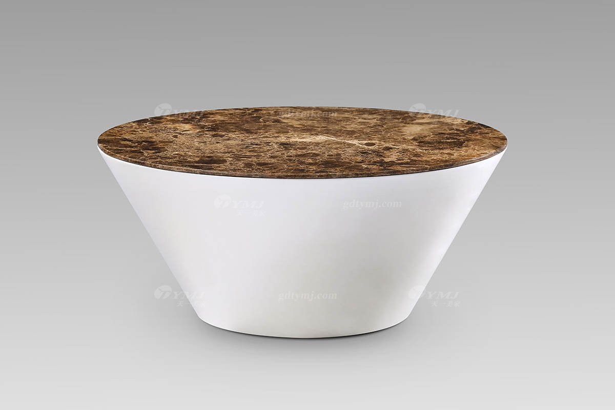 現代輕奢高端定制家具網咖大理石+白色珠光漆大圓幾