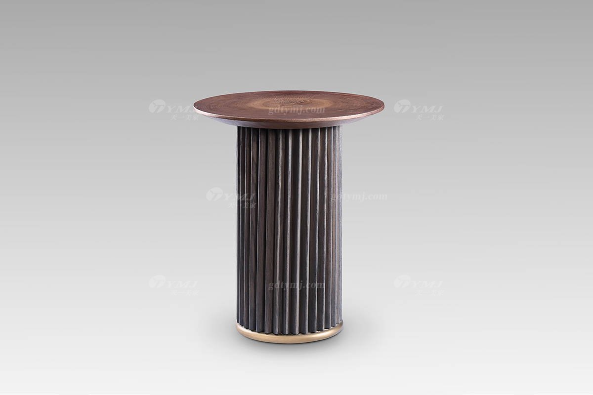 高端別墅家具現代輕奢時尚年輪木紋面板小圓幾