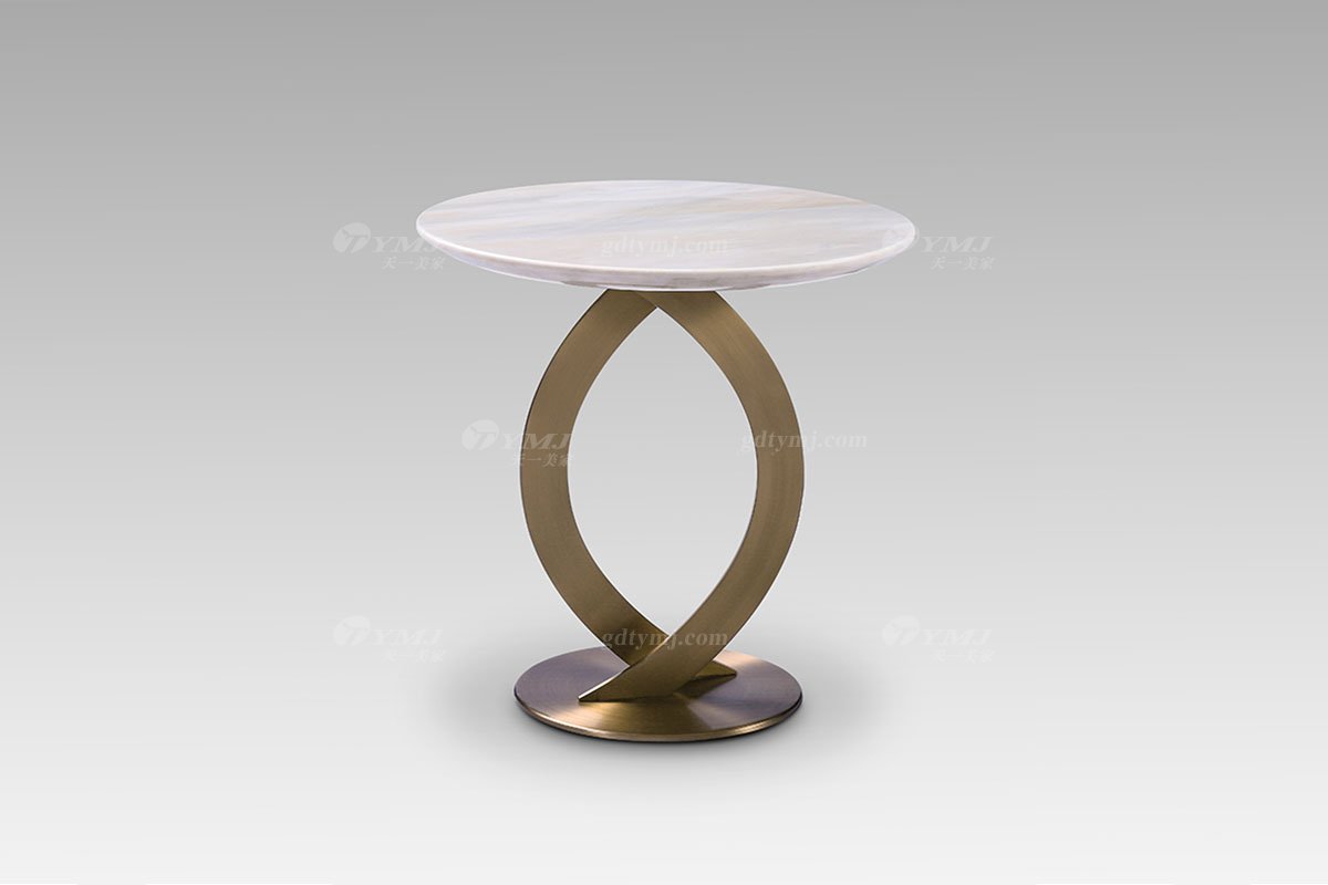 高端別墅家具現代輕奢風格高級大理石面+意大利金底角幾小圓幾