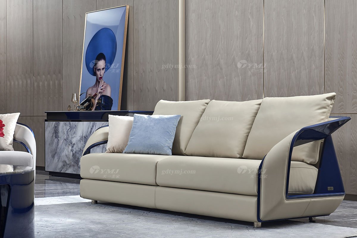 高端別墅豪宅家具星級(jí)酒店家具品牌后現(xiàn)代輕奢風(fēng)格客廳時(shí)尚真皮+孔雀藍(lán)二位沙發(fā)