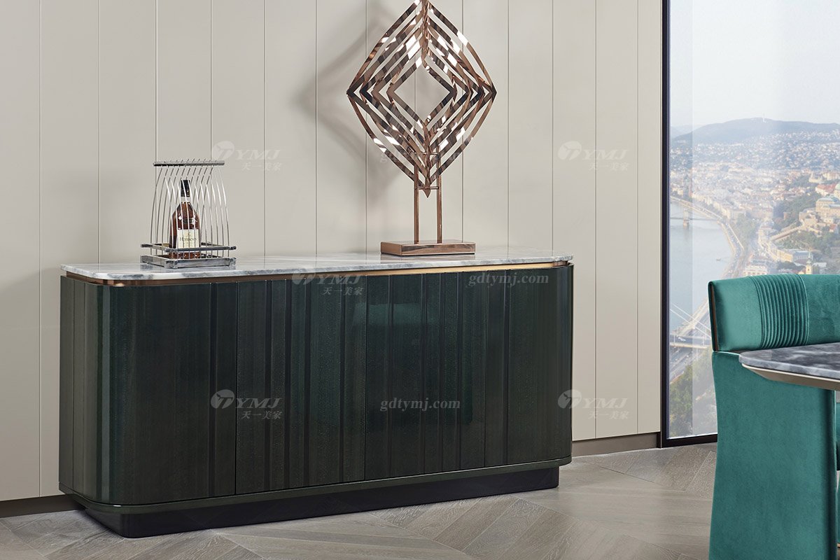 高端會所別墅家具品牌后現代輕奢風格餐廳時尚魚肚灰石面+尼斯莫蘭迪綠餐邊柜
