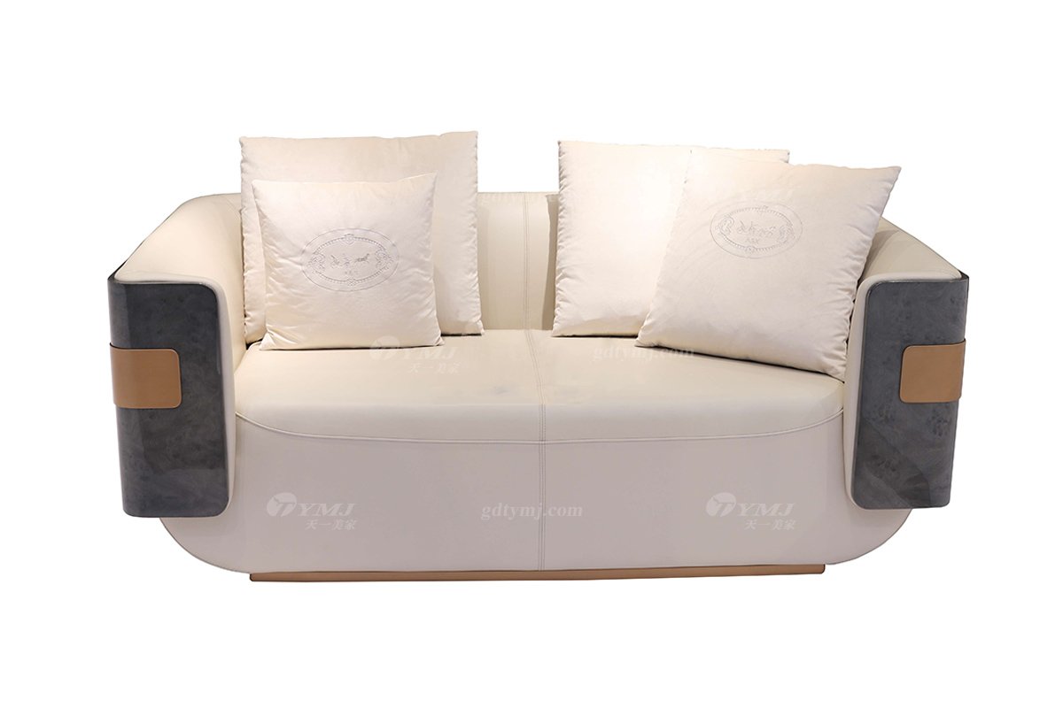 輕奢后現代風格家具高端會所別墅品牌家具時尚客廳真皮+樹瘤二位沙發