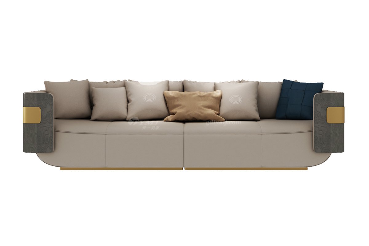 輕奢后現代風格家具高端會所別墅品牌家具時尚客廳樹瘤+真皮四位沙發