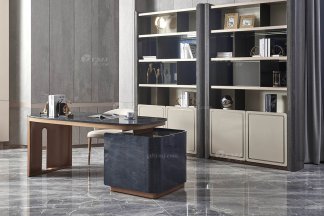 輕奢后現代風格家具高檔會所別墅家具品牌時尚不銹鋼黃銅拉絲書桌