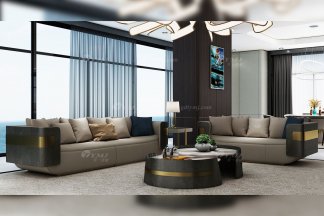 新中式風格家具高端別墅家具品牌簡約大氣時尚茶室家具實木+橙色生態(tài)皮藝茶臺