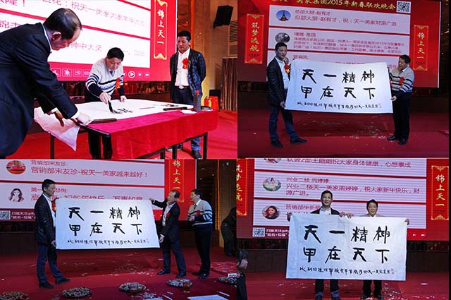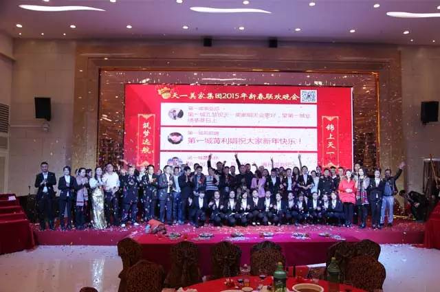 “錦上天一,筑夢遠航”——天一美家集團2015年年會于2月8日下午18點成功舉辦,本屆年會共分為總經理致辭、2014年度忠誠員工、優秀員工頒獎盛典、及節目表 演、微信大屏幕抽獎、獲獎節目頒獎、蒙古游頒獎等環節,別墅家具定制年會歷時四小時有余,整場大會亮點迭出高潮迭起,員工歡聲笑語不斷,熱烈掌聲不息。