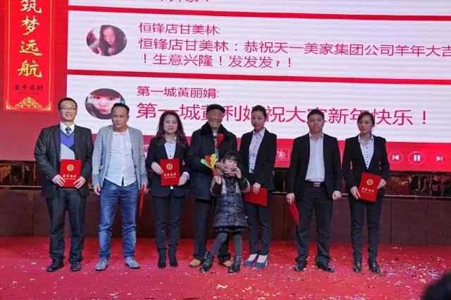 因事中途現身晚會現場的天一美家集團董事長程一先生,一出現就瞬間引爆全場,并送出了一位特別貢獻獎,他在晚會上真誠的說到:“天一美家不會辜負任何一位對公司有付出有貢獻的員工,會給任何一位努力上進的員工一個提升自我的平臺。”,贏得了臺下雷鳴般的掌聲。