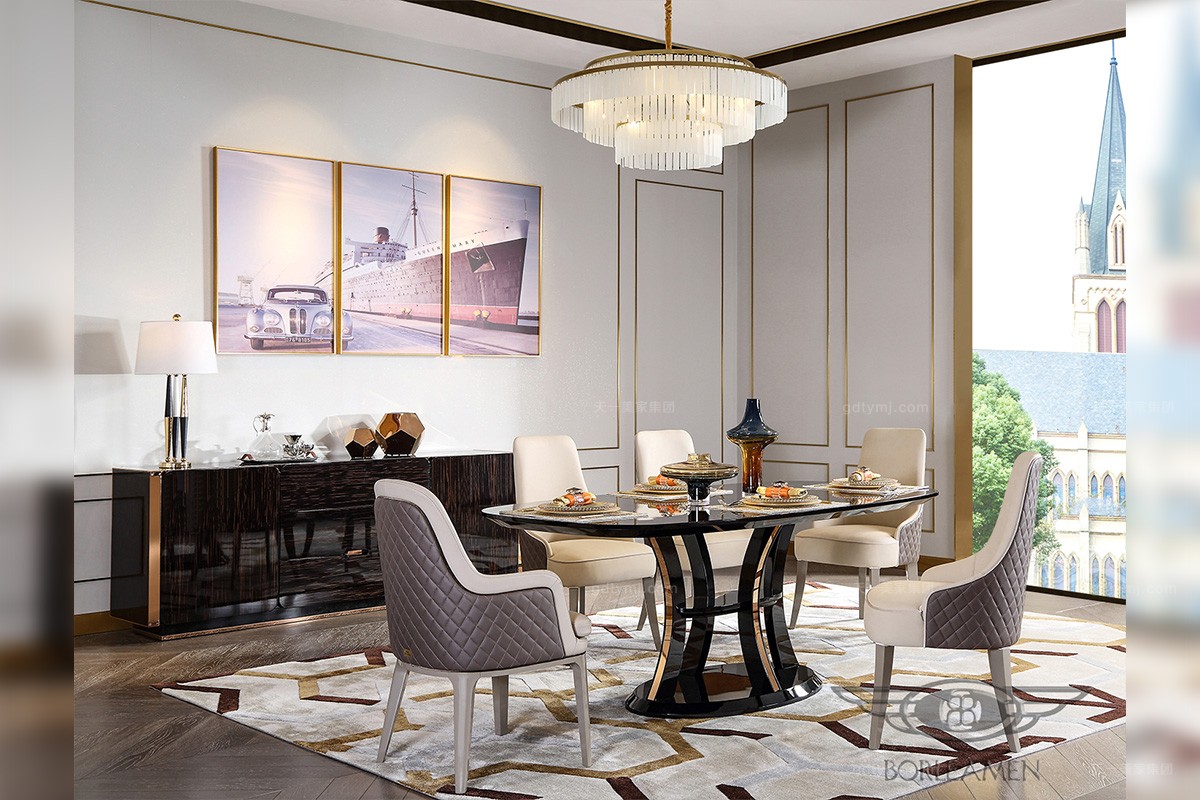 4、輕奢后現代家具將歷史文化帶入到現代生活當中,將裝飾手法融入到家具當中,通過光、影以及建筑為而構成了通透的空間,為裝飾起到了一個重要的階段。